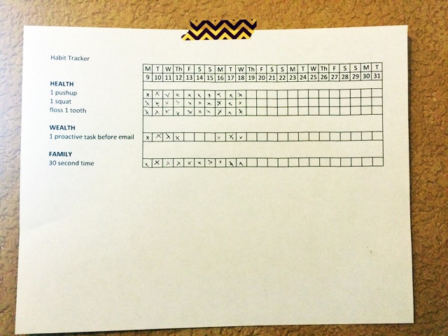 I keep a visual reminder of this habit on my wall with my micro habit tracker, which helps because I’m the kind of person who gets a nice feeling of satisfaction from checking that little box and not breaking the chain.